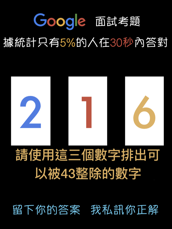 【QA】Google的面試題 據統計只有5%的人在30秒內答對