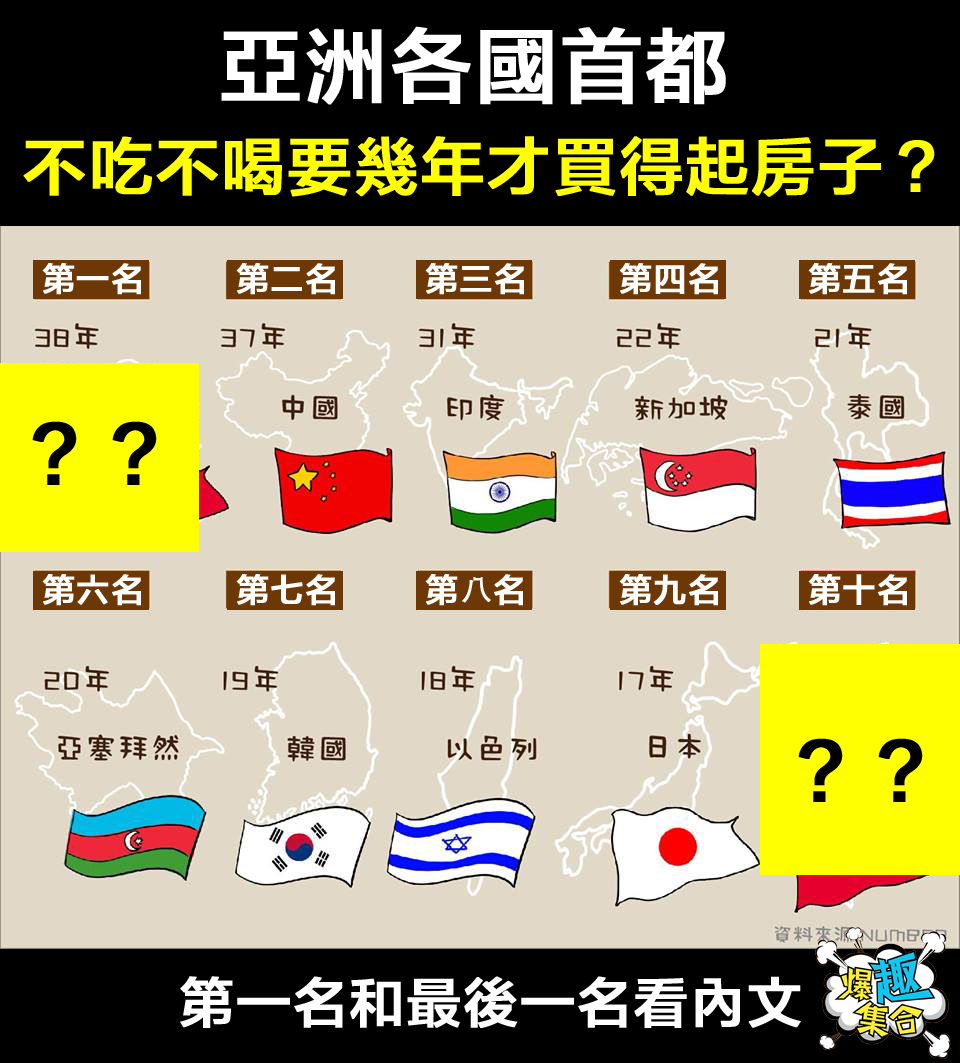 【IGSTORY】亞洲各國首都,不吃不喝要幾年才買得起房子?我都要哭了....