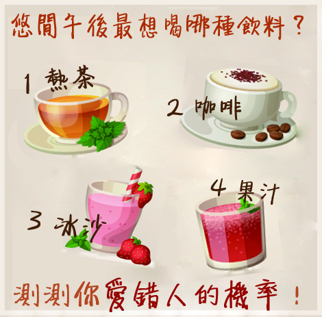 午茶時間!想喝哪種飲料? 看你愛錯人的機率有多高~