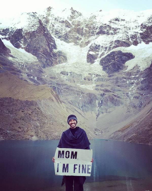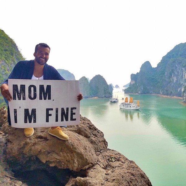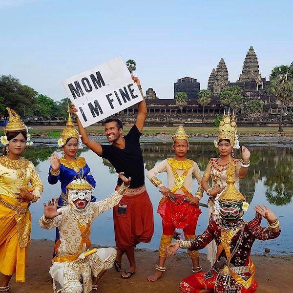 比利時布魯塞爾男子Jonathan Kubben Quiñonez是不少人心中的男神。他長得帥,身材也好,還是一名商業顧問,前途一片光明。但Jonathan不喜歡這種一成不變的生活,他決定賣掉全部家當,開始環遊世界。與所有愛孩子的媽媽一樣,Jonathan的媽媽聽到他的決定後也開始擔心,怕他過得不好,遇到危險,所以Jonathan每到一個地方,就會拍一張特別的照片,告訴媽媽「我很好」。
