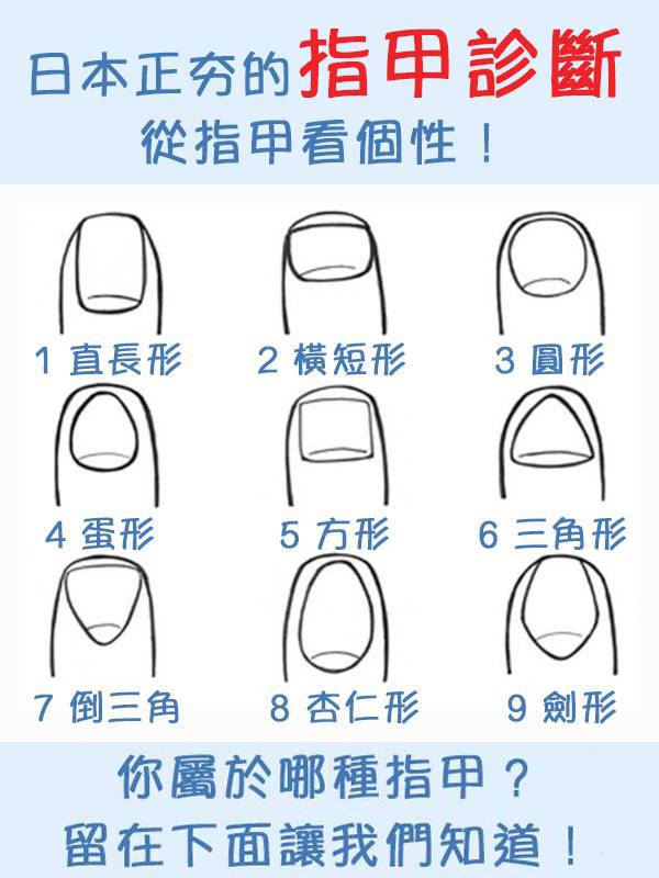擁有直長形指甲的人是溫和的理想主義者,右腦頗為發達,想像力豐富,不過容易受周圍氣氛影響,也比較容易被騙。