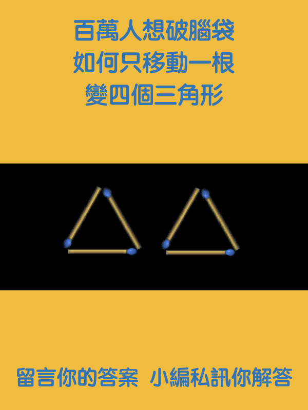 【爆QA】想破百萬人的腦袋 如何移動一根變成四個三角形