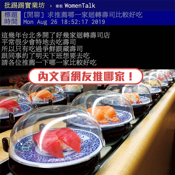 心血來潮和同事約了隔日下班要去吃迴轉壽司,求助廣大鄉民「請各位推薦一下,哪一家比較好吃?」