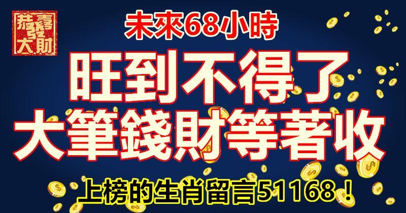 未來68小時,旺到不得了,大筆錢財等著收。上榜的生肖留言51168!