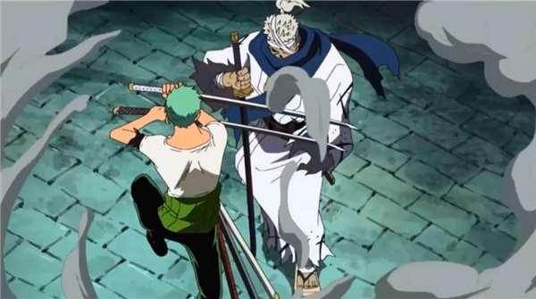 秋水也取代了在司法島拯救羅賓時,被擁有「鏽鏽果實」的海軍鏽化的「雪走」,成為綠藻頭正式的配刀。