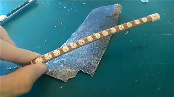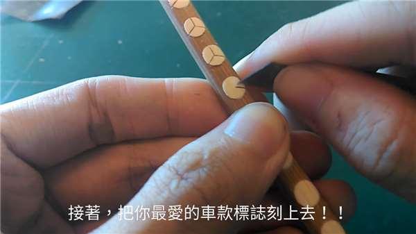 網友的手很巧,做工相當精細,他用兩種不同顏色的竹筷子呈現色彩差異,而這僅僅是刀鞘的部分…