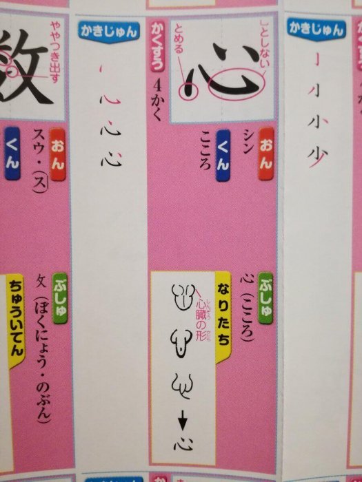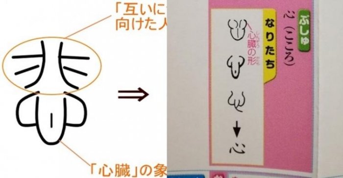 推特一名網友最近在日文教材上發現了漢字"心"的象形演變圖~