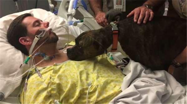 就在Ryan彌留之際,得知消息的親友們一一趕來醫院見最後一面道別,不過令人感動的是,醫院特別網開一面,允許Ryan飼養的拳師犬Mollie來到病房與主人見上最後一面,當寵物向主人道別的這一幕,馬上讓在場的所有人紅了眼眶。