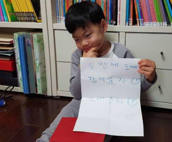 只見萬歲手拿的紙條上寫著「萬歲歐巴,一起玩吧,最喜歡歐巴了!」可愛的字跡後頭還畫上愛心圖案,搭配上萬歲臉上掛著自信的笑容,讓人笑說她根本就是「撩妹高手」!