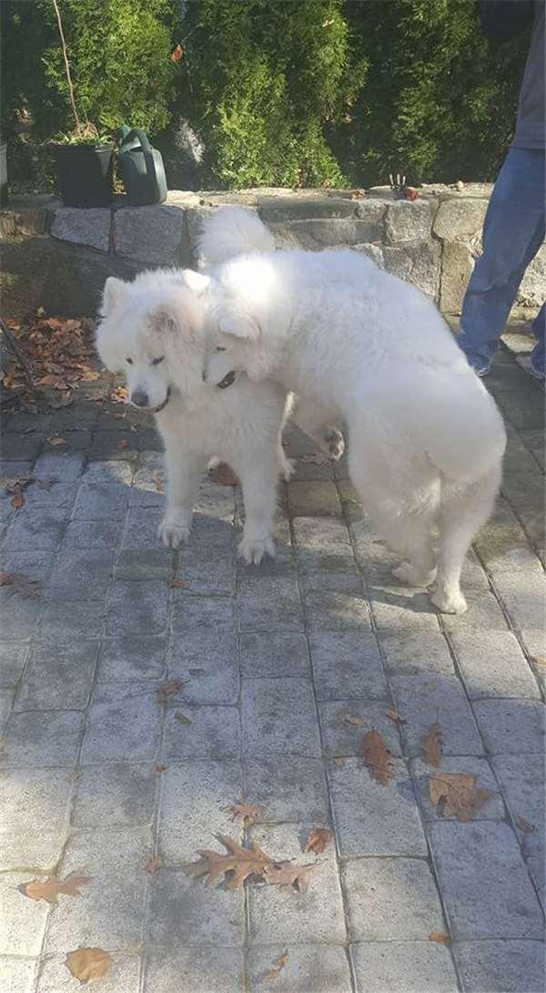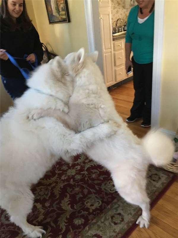 剛開始他們還有點擔心,會不會這麼久不見了,而忘了彼此,但事實證明,這種擔心完全是多餘的。因為當狗狗們一見面馬上欣喜若狂的摟抱和依偎,並開心的在後院瘋狂奔跑,那幕場景,完全是一副老情人重逢的感人畫面。