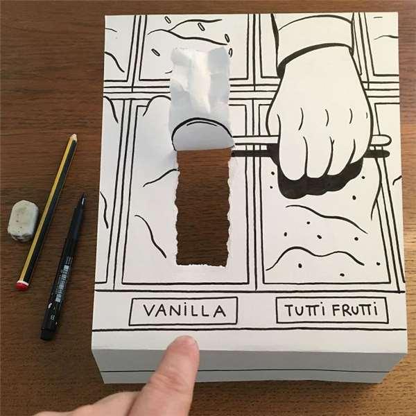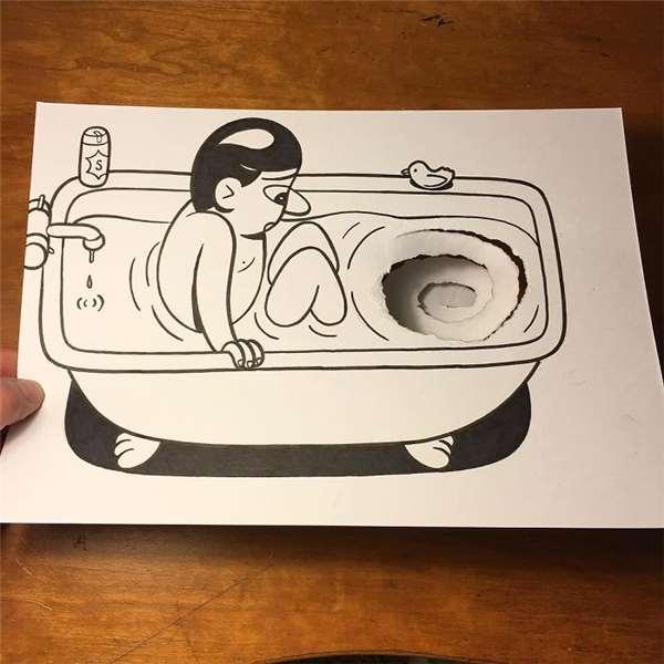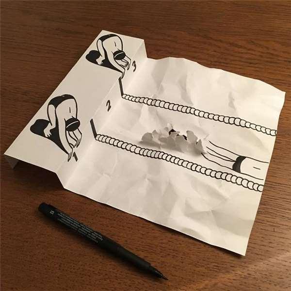 3D作品其實不局限於科技上,只要有創意、想法就能在一張白紙上做到。就像是這名來自於丹麥的藝術家Husk Mit Navn只運用一隻筆和一張白紙和一雙手,就顛覆了人們對於平整紙張的刻板印象。廢話不多說,就讓我們來看看他一幅幅的活潑作品吧: