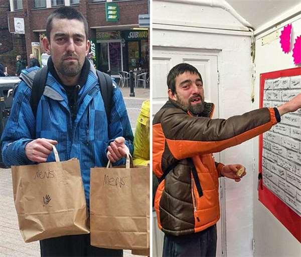 事實上,現年31歲的David已經在街上流浪了數十年,打從18歲那年他就開始在切斯特的街上流浪著,這是因為青少年時期的他屢遭同儕霸凌,為了忘懷生活上的不如意他開始借酒澆愁,一度喝到酒精中毒,去年醫生曾告誡他如果再這麼不知分寸的喝酒,恐怕再活也沒幾月了,後來在其他街友的協助下,告知附近有個慈善機構(ShareShop Chester)專門提供免費的咖啡和三明治,讓他得到該有的協助。