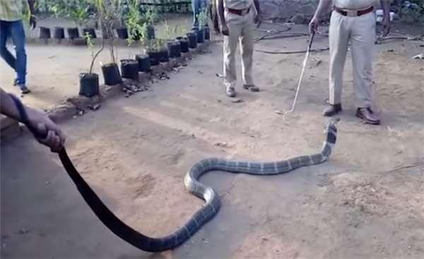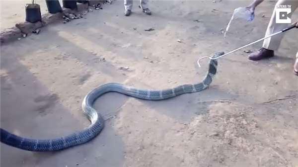 據報導指出,這段畫面發生於印度南部,由於近來不見甘霖降落,使得當地深受乾旱缺水的窘境,除了當地居民人要到外地引水源外,不料連一條長達3.6公尺的眼鏡王蛇也闖入住宅區覓水。雖然撞見毒蛇亂竄總讓人覺得害怕,不過這也讓當地村民意識牠缺水,於是當救援團隊獲報前往現場後,第一時間做的事就是喂水給牠喝。