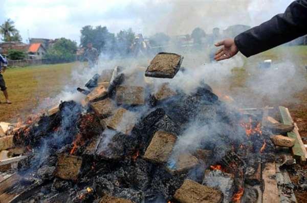原來近幾年來印尼執法部門積極掃毒,並將蒐獲的毒品一一銷毀,日前雅加達警方為展示禁毒成果,在警局前一口氣將搜查到的3.3頓大麻全數燒毀,展現警方禁毒決心!