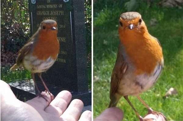 當Marie抵達兒子的墓碑後,她就坐在埋葬Jack墳墓旁的草地上,靜靜地旁在一旁。不過此時卻也讓她注意到周邊有隻知更鳥飛來飛去的,試圖降落於她的身上。受訪的Marie表示:「牠根本一點也不怕人,所以我拿出手機錄下這一幕,並伸出手說:『到這裡來,到這裡來。』沒想到最後牠果真降落到我的手上。」