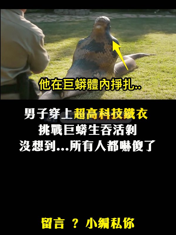 (source:youtube截圖)根據dailymail的報導,國外探索節目的成員,為了感受巨蟒纏繞獵物時的力量。這名成員穿上鐵制的保護外殼,親身體驗被巨蟒纏繞的感受。 其實男子穿戴的是有透過電腦精准計算的鐵衣去感受威力!