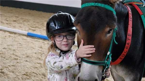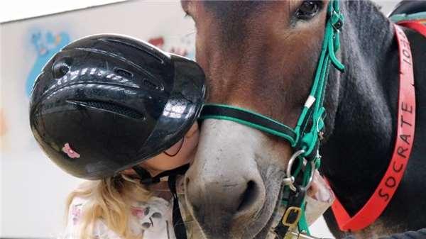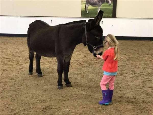 耳聞的親友建議這家人帶小孩到附近的驢子收容所走走,因為裡面有服務驢,能撫慰有特殊需要孩子的心靈,或許對於女孩會有幫助。在父母的帶領下,2歲的Amber有了與Shocks第一次的接觸,而她也正好是這頭毛驢的第一個病人。