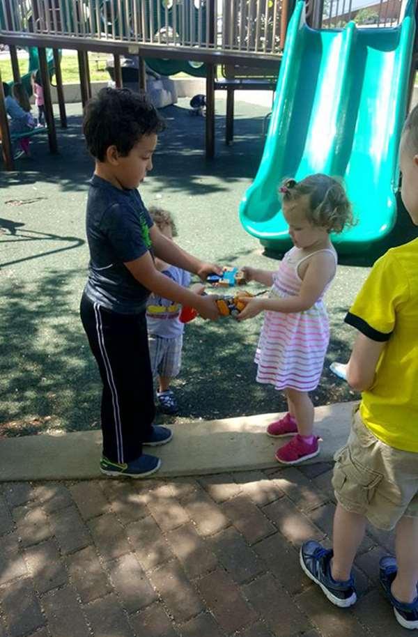 許多父母都會教導孩子要「樂於分享」,但阿蘭亞‧科爾伯格(Alanya Kolberg)並不這麼認為,日前她帶著兒子卡森(Carson)到公園玩耍,結果有幾個小男孩看到卡森手上拿著玩具,就跑來要求要一起玩,兒子因為這些突如其來的邀約而有些不知所措,心急的看著媽媽不知道如何是好。