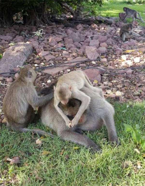 一般人的印象中,猴子的舉止總是相當敏捷、活蹦亂跳的,不過遠在泰國曼谷的一處水上市場中,卻讓人見到爽爽過的猴子,與當地人相處融洽的牠們,平常總在市場周圍徘徊,備受當地居民與遊客的進貢,對吃的這方面完全不用困惱,因為總有許多人會自動獻上各式各樣的蔬菜水果和零食。