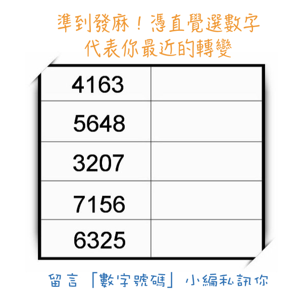 選到這組數字的朋友代表無條件的愛與無盡的滋養,你是在想要被滋養的狀態裡?還是有能力滋養別人的狀態裡呢?這兩件事的關鍵都是「愛自己」,做好「愛自己」這件事,你就擁有愛的泉源。唯有擁有愛的泉源,才無需從任何人事物上獲取愛的感受。