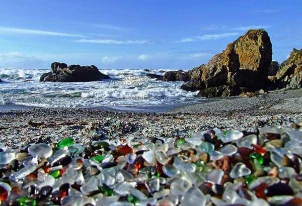 無獨有偶,在美國加州同樣也有座美麗的玻璃海灘,當時那座海灘也因為被當作垃圾場而丟了許多廢棄物,當時的政府發現這些垃圾恐對生態造成影響後,便下令將海灘上的大型廢棄物移除,但海灘裡數以萬計的玻璃碎片卻無法順利清除,最後也是靠著大自然的力量,把這些碎片磨成圓潤小石塊,才讓這片海灘又重新活躍在大家眼中。