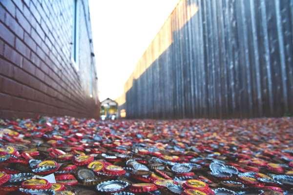 在美國德州A&M大學(Texas A&M University)校園裡,就有條佈滿瓶蓋的小巷子,被稱為是「瓶蓋巷」(Bottle Cap Alley),這條小路長約50米,地上佈滿了啤酒瓶和汽水瓶的瓶蓋,許多人都慕名而來參觀、拍照,甚至在裡頭尋找稀奇的瓶蓋。