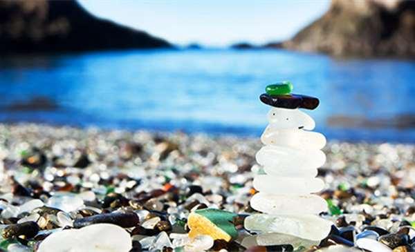 但沒想到隨著北太平洋浪潮的日夜沖刷,數十年過去後,這些玻璃和陶器碎片居然被磨平稜角,外表變得光滑圓潤,像極了一顆顆的彩色鵝卵石,在太陽底下色彩絢爛而耀眼,而這裡也成了當地著名的觀光景點「玻璃海灘」(Glass Beach)!