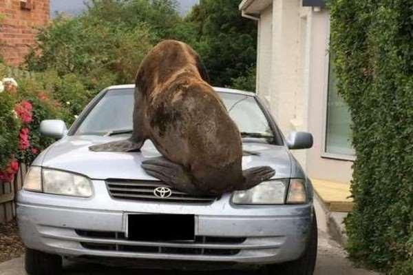 住在澳洲塔斯馬尼亞省的男子William Gregory,去年某個早上聽到外頭傳來奇怪的聲音,擔心有不肖人士闖入,他趕緊起身察看,卻在打開家門時發現有隻巨大的澳洲毛皮海豹(Australian Fur Seal)壓在他心愛的豐田汽車擋風玻璃上。