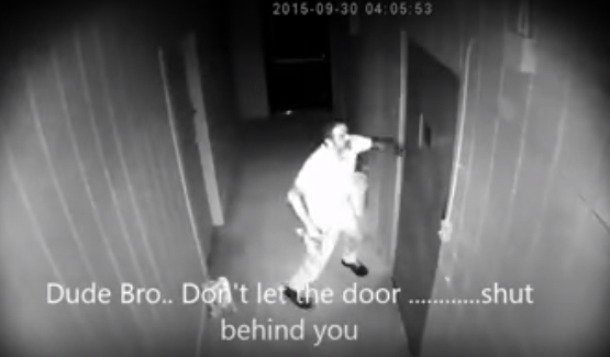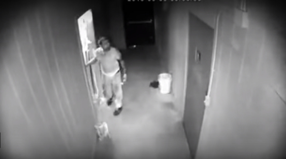小偷後來無計可施,幾乎陷入絕望的靠著牆上,最後決定再拚一次,開始拿起工具開始橇鎖,橇了好一段時間終於有扇門被他給橇開了,相信小偷心裡一定想著「皇天不負苦心人」吧,正當他把門打開時,卻發現竟然還是死路一條,讓他絕望的又站回牆邊。