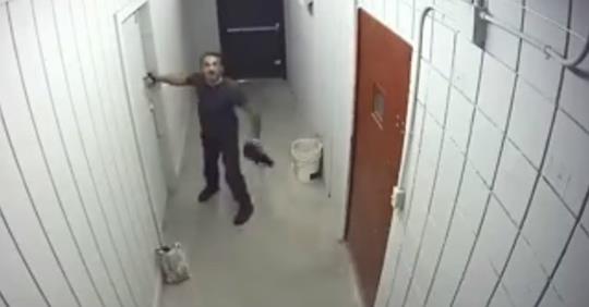 沒多久後其中一扇門被打開了,原來小偷在絕望的同時,店主也已經報警「請警方去救他」,只見小偷看到警察完全沒反抗,直接跪下乖乖地跟著警察走,大概心裡也雀躍「終於能從這鬼地方離開」吧!只能說店主的復仇計畫真的太強大了,如果再做個「密室逃脫」的副業,肯定會大紅XDDDD