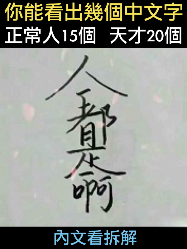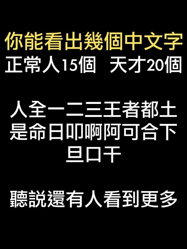 你能看出幾個中文字?一般人15個以上,天才20個以上~~