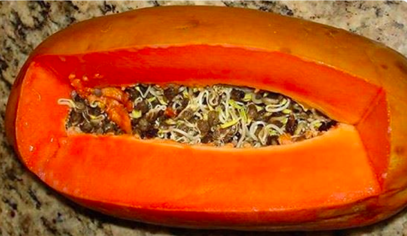 媽媽說:「果肉還可以吃,這裡面的不是蛆,只是木瓜種子發芽了而已,把種子拿來種,一定可以成功長出木瓜樹的!」