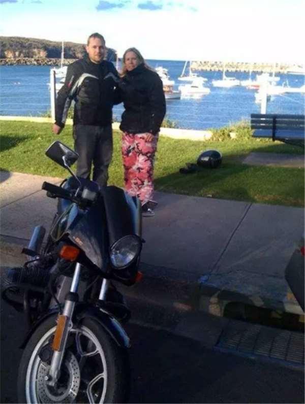 妻子精神尚好時,他騎著摩托帶她出門散心。