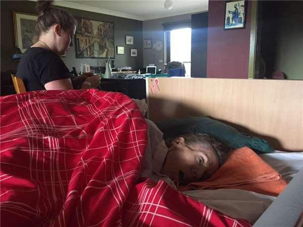 Tim肩上的擔子更加沉重,不僅要把妻子抱進抱出,洗澡擦身,伺候大小便,還要給她做軟和的食物,花很長時間一點點給她餵。晚上要檢查好幾次,生怕妻子在睡夢中忽然沒了呼吸。