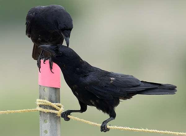 烏鴉在配對成功後會為自己圈定一大片領地,然後花一輩子時間維持這一片領地,在這片領地裡,前輩會幫助後輩撫養幼鳥,後輩也會幫助前輩獲取食物。