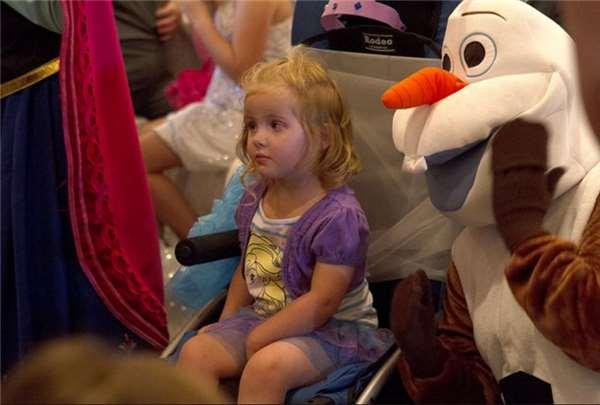 她去了迪士尼,和自己最喜歡的《冰雪奇緣》裡面的人物一起玩耍。