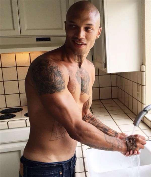 話說,下面這哥們是Jeremy Meeks,來自美國加州。