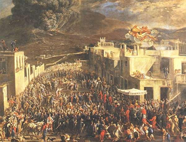 西元79年8月24日位於不勒斯灣的維蘇威火山爆發,坐落在火山腳下的龐貝城因此遭到大量的火山灰覆蓋,一夜之間遭到活埋!