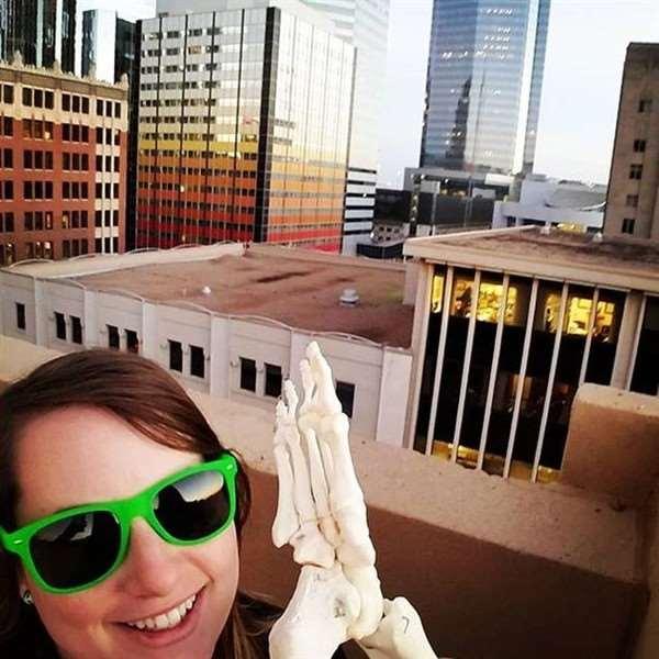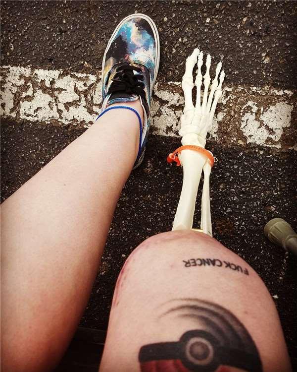 沒錯,這裡就不得不說說這妹子的獨特幽默感了,當時的截肢手術結束後,她直接找到醫生說:「能把切下來的右腿還給我嗎?那骨頭我想留著。」