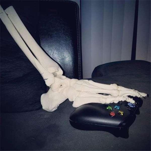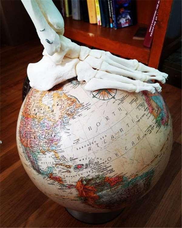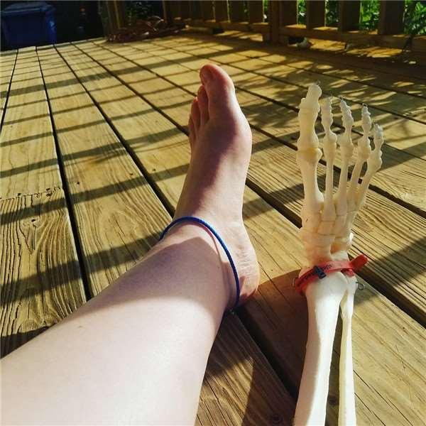 嗯……左腳正常,右腳是森森的白骨,然而這並不是萬聖節買來的惡搞道具,妹子也不是什麼科幻電影裡一半肉身一半骨架的改造人。