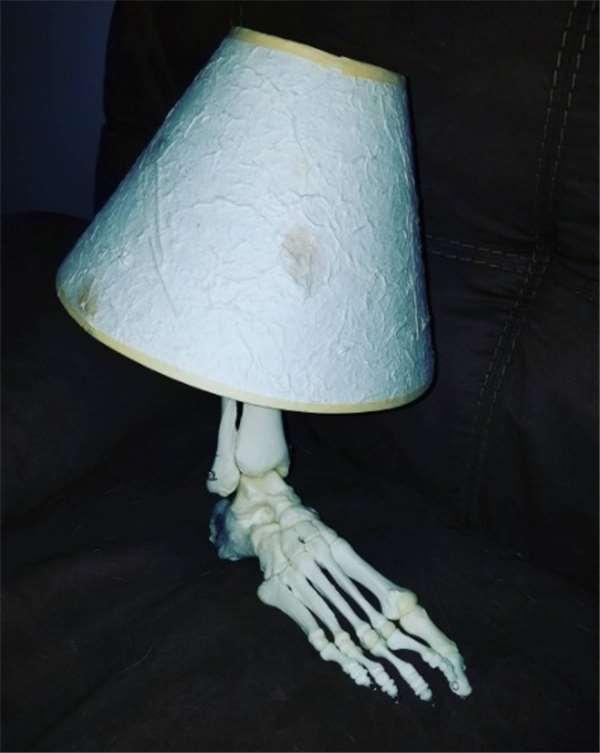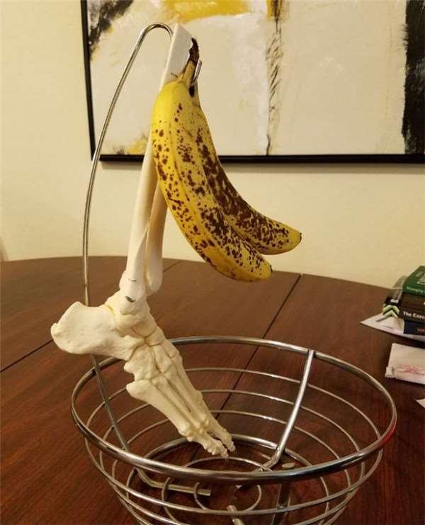 請求醫生幫她簡單處理了一下殘肢,然後就把自己的腳骨扛回家,回家她進一步表面處理和固定之後,這就成了現在的畫風.....