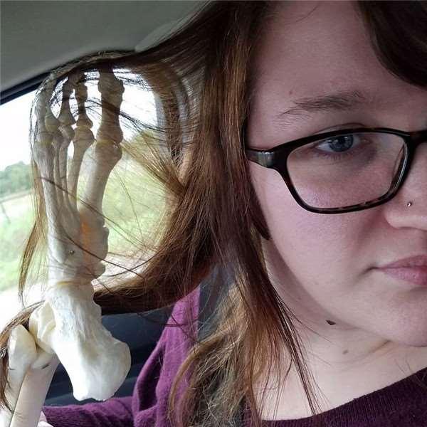 嗯……她現在每天都隨身帶著自己這條腿骨,還給它開發了很多意想不到的「實用」功能,你們感受一下。