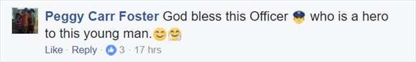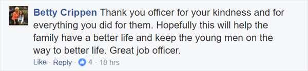「謝謝警察大人的善意以及為這家子做的所有事。希望這能改善他們的生活,也能引導這個小伙子往正確的人生道路上發展!幹得好!」