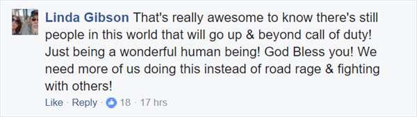 「人間有真情,世間有真愛!簡直不敢相信這個年代還有人願意做職責之外的事!好人一生平安!人與人除了撕逼能不能多乾一些像這樣的善事啊!」