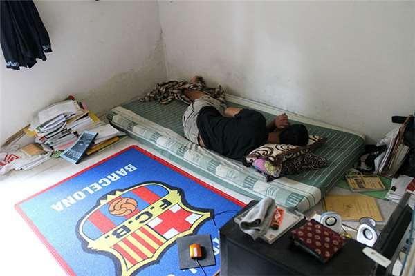沒有床,沒有家具,簡陋的設施,讓男孩特別不滿意的是那張洩了氣的氣墊床,他常常抱怨,這讓他的背經常疼痛。
