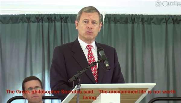 他還引用了蘇格拉底的名言:未經自省的人生無意義。來指出:畢業生應該時時思考想要成為什麼樣的人,過什麼樣的生活。