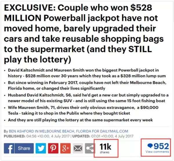 《每日郵報》的記者也是無奈了,報導了這麼多彩票中獎者,那麼多百萬千萬富翁,而你們這個億萬富翁的畫風,真是最清奇的……報導一出,世界震驚!