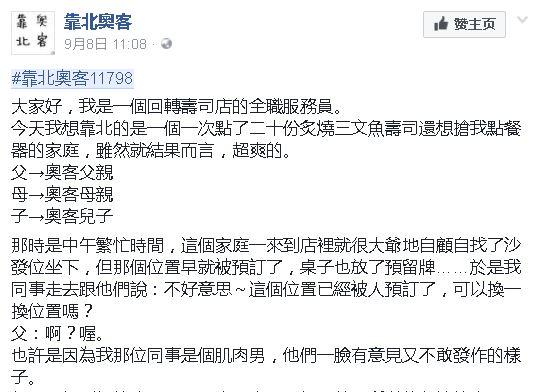 今天我想靠北的是一個一次點了二十份炙燒三文魚壽司還想搶我點餐器的家庭,雖然就結果而言,超爽的。