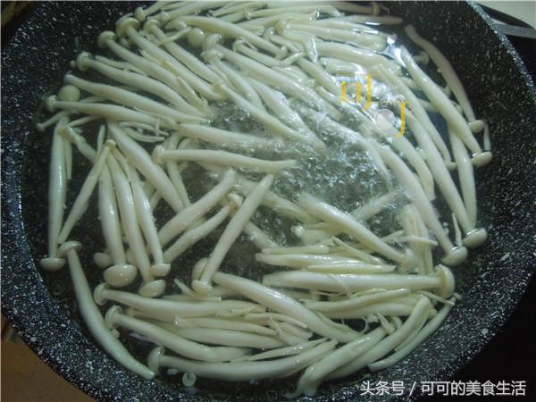燒半鍋水,下白玉菇煮軟,一般水開後煮2-3分鐘