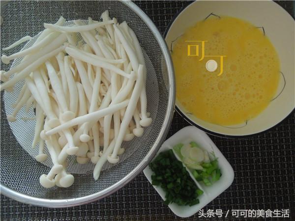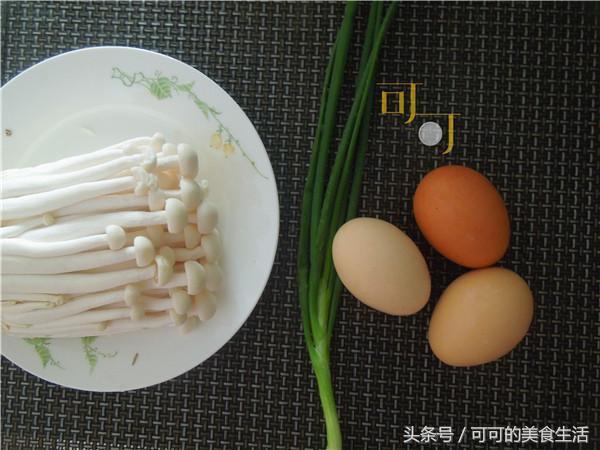 一盒白玉菇、三個雞蛋,1根小蔥,食材超簡單,味道卻極好,做起來也簡單方便。